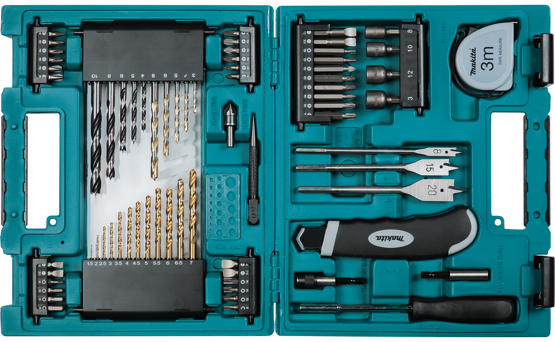 The Makita D-37144 tool set features a practical design and a comprehensive parts set. Made of high-speed steel and chrome vanadium, the drills and screws are tough and durable enough to withstand repeated use. A durable plastic carrying case protects the parts from damage and rust.