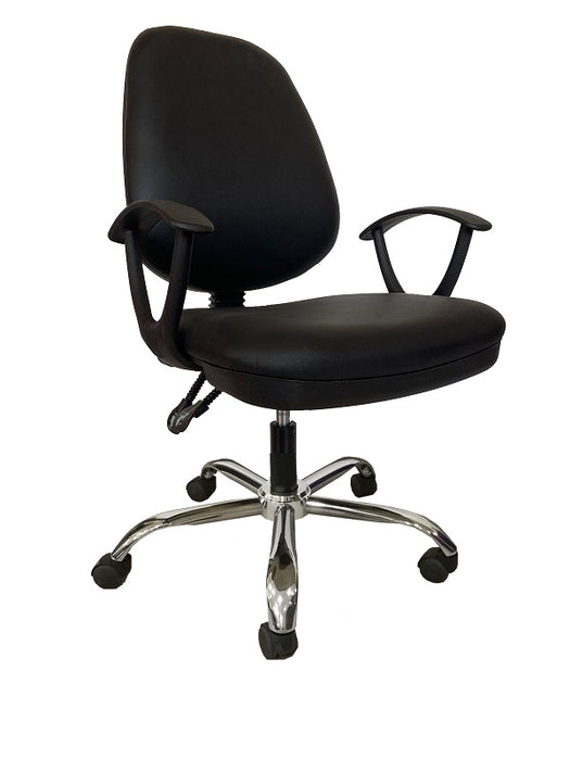 Product Name in Arabic: Wide Secretary Chair in Luxury Black Leather with Chrome Base