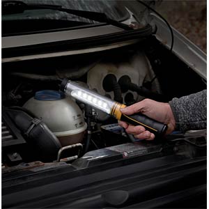 - Durable and Portable Design: The lamp features a rugged, shock-resistant, and water-resistant (IP54) design, making it ideal for use in tough working environments. It also features a rubberized handle for easy carrying.