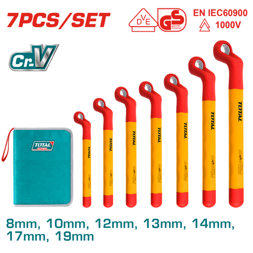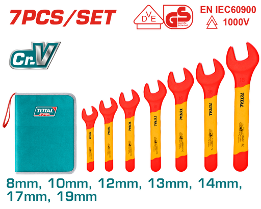 Total insulated open wrench, 7 pieces