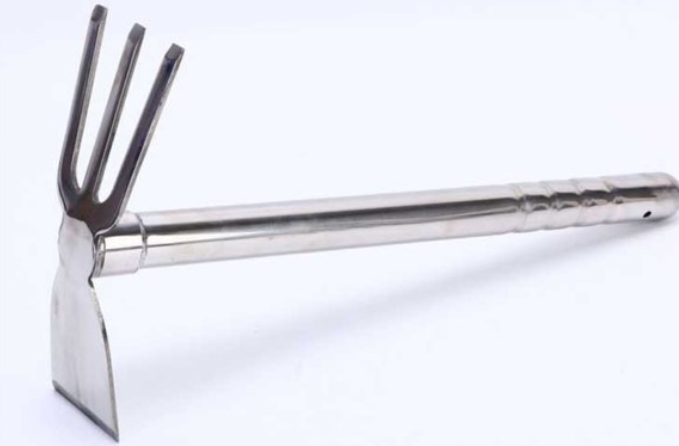 A tool used in gardens and landscaping to deal with soil and ground.