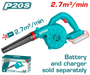 اسم المنتج بالإنجليزي: TOTAL Cordless Blower – 20V, 18000rpm, 2.7 m³/min Air Volume - Battery & Charger Sold Separately (TABLI2078)