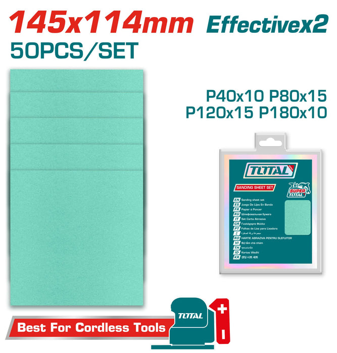 • Product Name in English: TOTAL Multipurpose Sandpaper 145x114mm (50Pcs) TAC145115