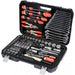 - A comprehensive tool set consisting of 122 pieces for all maintenance, tightening and installation work, with a bag to store the tools