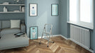 Made of coated steel, the Colombo ladder is a durable, lightweight ladder designed for ease of use and storage. It features a slim folding design, non-slip steps, and non-slip foot bases for stability and safety.