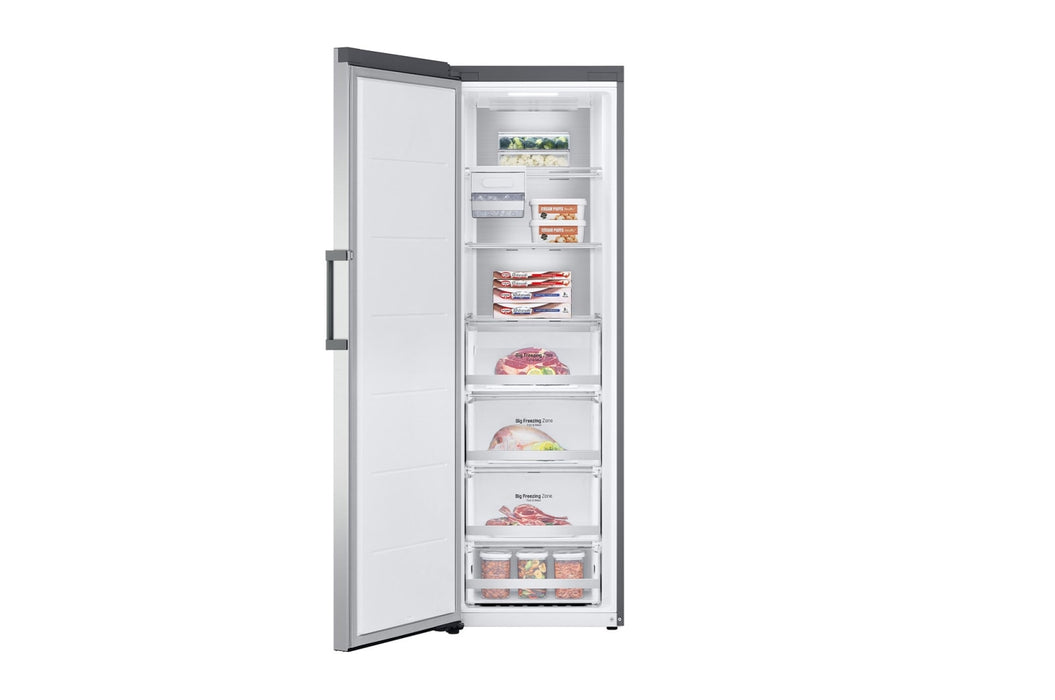 LG's 355-liter upright freezer with Smart Inverter Compressor, silver, is the perfect choice for every home seeking efficient, state-of-the-art storage technology. With a durable design and advanced features, it's guaranteed to keep food fresher for longer.