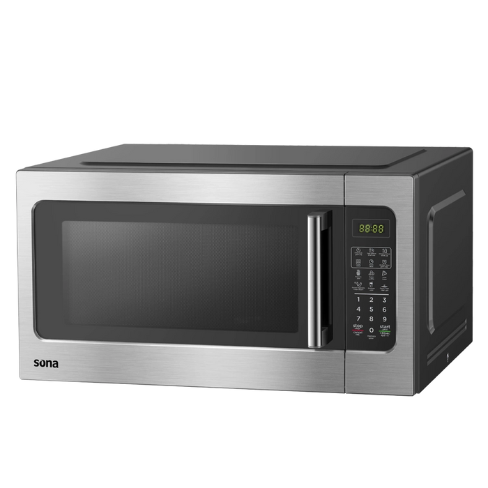 The Sona 65-liter, 1200-watt, black, steel frame, 11-program microwave is the perfect solution for the modern kitchen. With its attractive design and advanced features, it offers an unparalleled cooking experience. It's ideal for large families or cooking enthusiasts who need a multifunctional appliance that makes it easy to prepare their favorite meals quickly and efficiently.