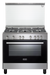 Elba 90cm gas cooker, stainless steel design, 5 burners, wide enameled racks, full safety system