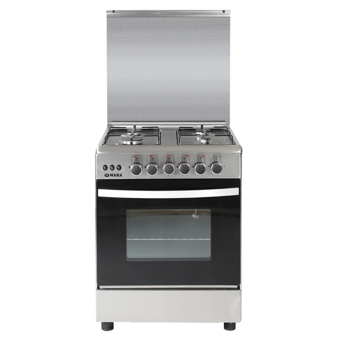 Nara 4 Burner 60 cm Stainless Steel Cooker with Wide Coated Grates and Aluminum Handle