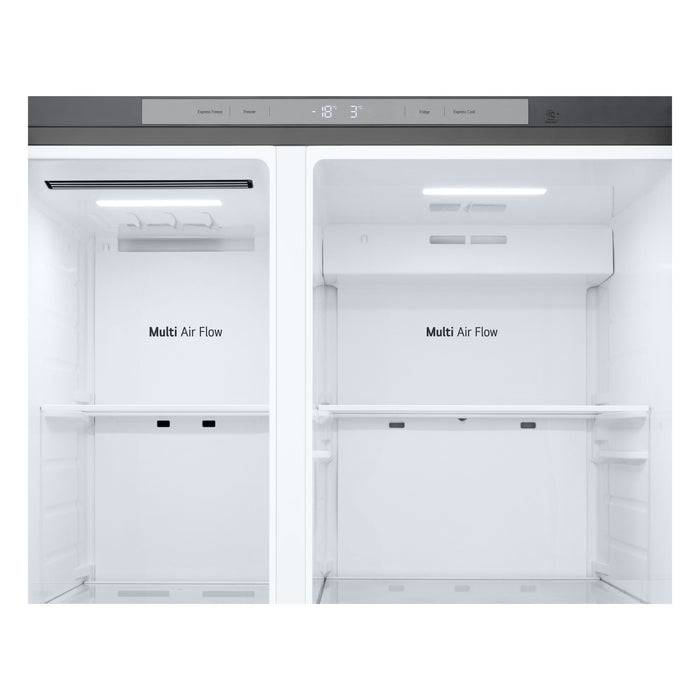 LG's 703-liter total capacity side-by-side refrigerator, Inverter Compressor, Multi Air Flow, Fast Cooling, and Smart Diagnosis™ is the perfect solution for your storage needs. Thanks to its advanced features and energy efficiency, you'll enjoy a great cooling experience and keep food fresher for longer.