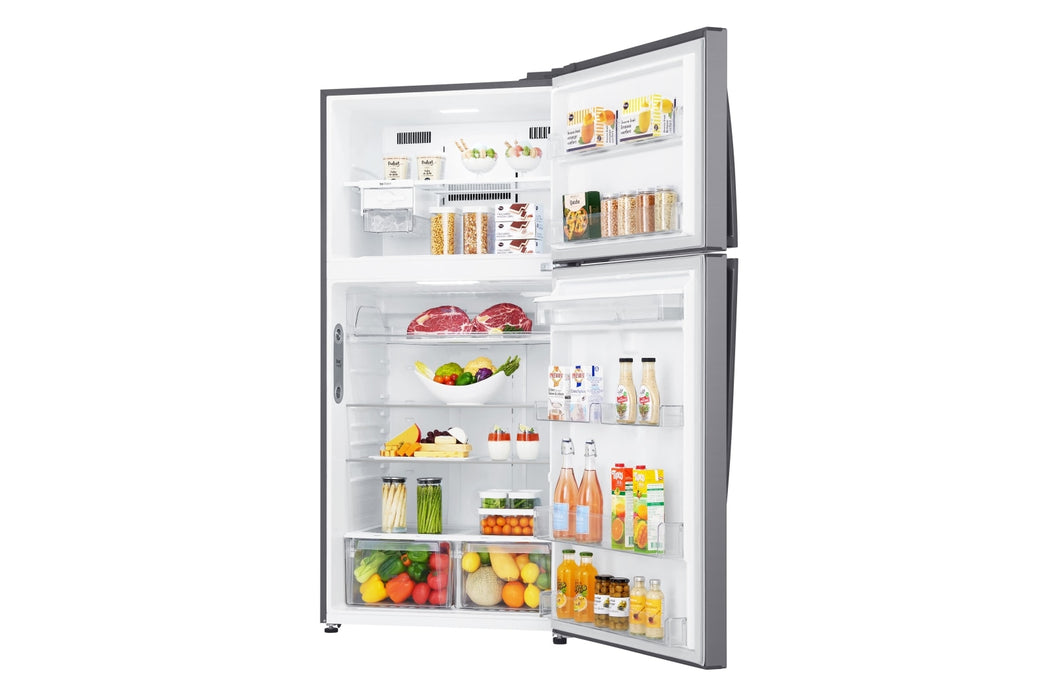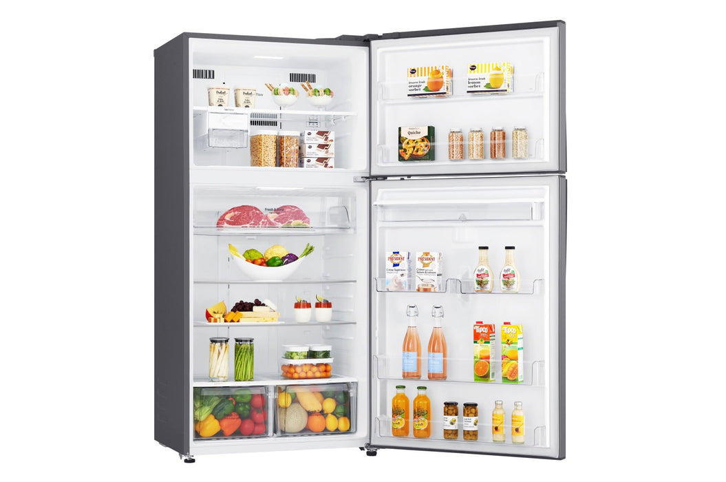 LG's 630-liter top-freezer refrigerator, with a linear compressor, inverter cooling, door-to-door cooling, and Water Dispenser, Hygiene Fresh+™, in silver, provides an ideal storage experience while keeping food fresh and healthy. Thanks to its advanced technologies, this refrigerator is the perfect choice for modern homes!