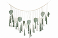 تعد هذه التعليقة الجدارية قطعة فنية استثنائية لمن يبحث عن الفخامة والهدوء في آن واحد. بطول 200 سم، تجمع بين فن المكرمية وجمال أوراق الشجر المنسوجة يدوياً بالألوان البيضاء والخضراء. بفضل الخرز الخشبي والأهداب المتدلية، تخلق هذه القطعة جواً دافئاً ومريحاً في غرف المعيشة، وتعتبر إضافة مثالية لديكورات المنازل العصرية التي تميل للطبيعة.
