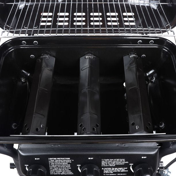 - 3 شعلات من الفولاذ المقاوم للصدأ مزودة بإشعال متكامل ، 9000 وحدة حرارية لكل منها