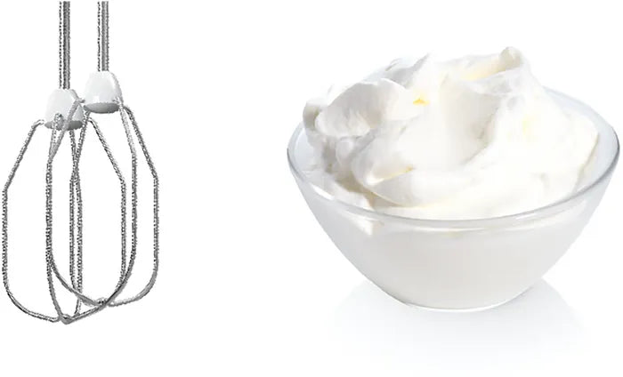 - ملحقات مشمولة: 2 × خفاق للتقليب، 2 × خطاف عجن احترافي