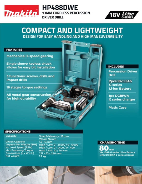 اسم المنتج: دريل ماكيتا اللاسلكي HP488D - 18 فولت