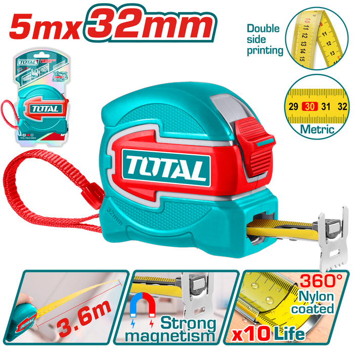 اسم المنتج بالانجليزي: TOTAL Steel Measuring Tape 5m x 32mm – Magnetic Hook (TMT80532M)