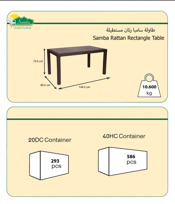 اسم المنتج بالعربي: طاولة مستطيل سامبا راتان
