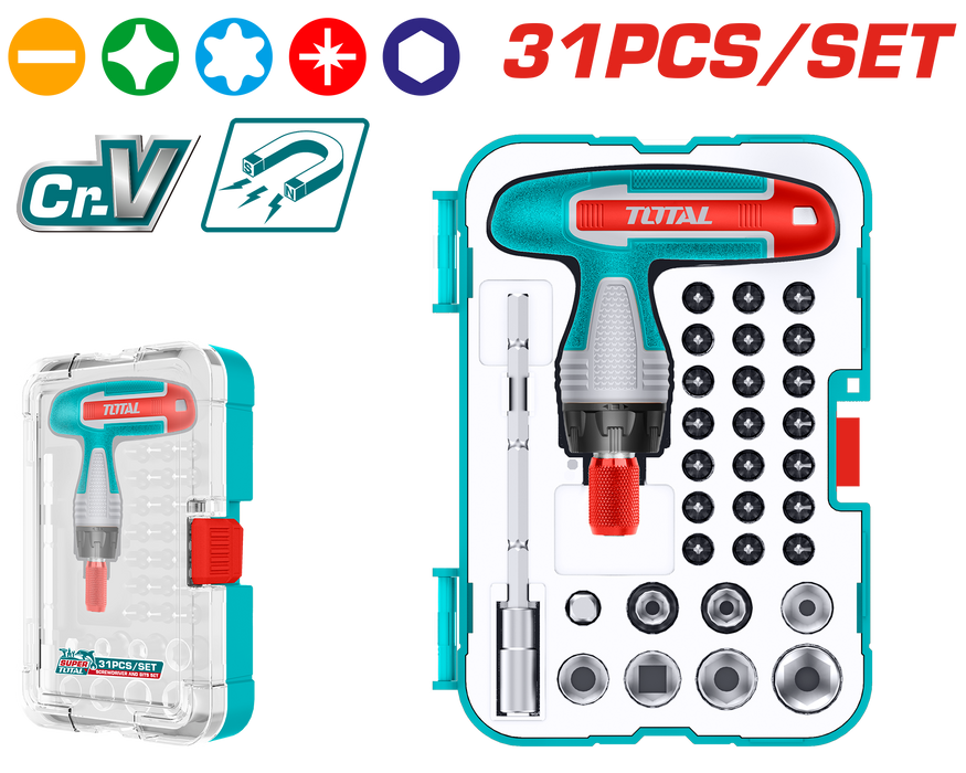 طقم بوكسات+مفكات 31 قطعة 1/4"من توتال- Total