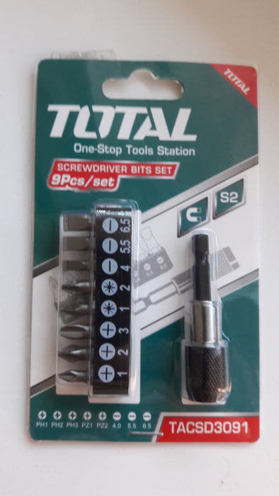 اسم المنتج: طقم راسيات مفك مع ادبتر 9  قطعة توتال