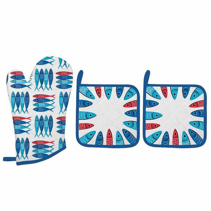 طقم مساكة وقفاز فرن 3 قطع من Easy Life Sardine's - ألوان متعددة