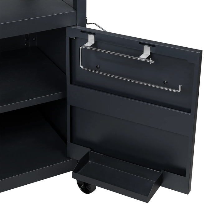 - الميزات الإضافية: حامل جهاز لوحي/هاتف، حامل كيس قمامة، صندوق تخزين طعام بغطاء قابل للاستخدام كلوح تقطيع، صينية بهارات، قضيب مناديل ورقية.