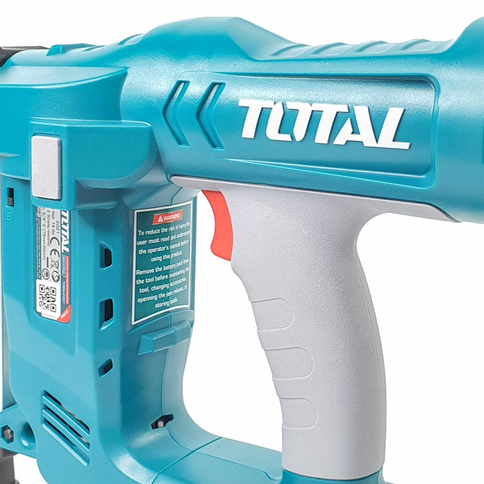 • يتميز فرد المسامير اللاسلكي ليثيوم أيون من توتال بأنه يعمل بالبطارية، مما يجعله محمولًا وسهل الاستخدام في أي مكان.