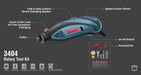 • يشمل ملحقات دوارة متنوعة للسنفرة والقطع والطحن والنحت والتلميع والتنظيف