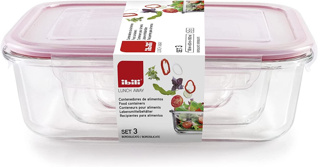 طقم 3 حافظات طعام من Ibili Lunch-Away - أحمر