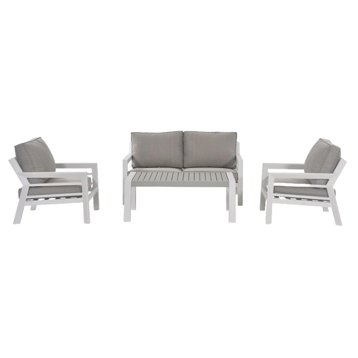 هذا الطقم الأنيق يجمع بين الراحة والمتانة، حيث صُمم ليناسب المساحات الخارجية المختلفة بفضل هيكله المصنوع من الألومنيوم المقاوم للصدأ ووسائده المريحة المقاومة للماء. إنه خيار مثالي لمن يبحث عن قطعة أثاث عملية وجميلة تدوم طويلاً.
