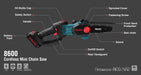 منشار سلسلي لاسلكي احترافي من RONIX (موديل 8600 في الوصف) يوفر أداء قطع قوي وسلس بفضل محرك قوي وسرعة سلسلة 4.8 متر/ث، مع نظام تزييت تلقائي، ضبط سلسلة بدون أدوات وميزات أمان ومقبض مريح للاستخدام في أعمال قطع الخشب وتقليمه في البيئات الاحترافية والحدائقية.