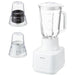 خلاط باناسونيك MX-MG5321 بقوة 700 واط وسعة 1.5 لتر، يتميز بشفرات مسننة لتكسير الثلج وطحن سريع، ويأتي مع مطحنتين جافتين وإبريق زجاجي.