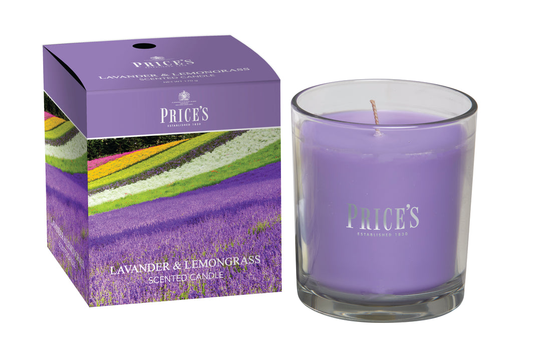 شمعة معطرة بكوب من Price's - لافندر وعشب الليمون