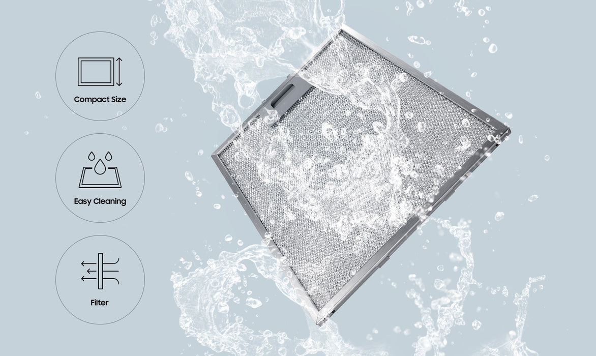 - فلتر ألمنيوم قابل للغسل: يعمل على جذب الزيت والغبار، مما يوفر لك بيئة مطبخ نظيفة وصحية.