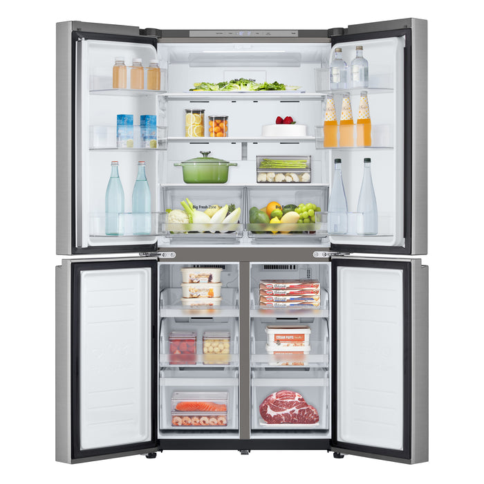 ثلاجة اربع ابواب 581 لتر سعة اجمالية ، ضاغط عاكس، تدفق هواء متعدد، تبريد سريع، تشخيص ذكي™، لون سلفر من ال جي