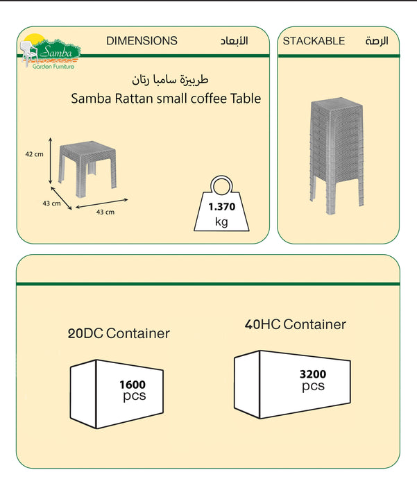 اسم المنتج بالعربي: طربيزة سامبا رتان بلاستيكية - عملية وأنيقة للاستخدام الداخلي والخارجي