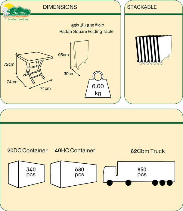 اسم المنتج بالإنجليزي: Folding Rattan Square Table