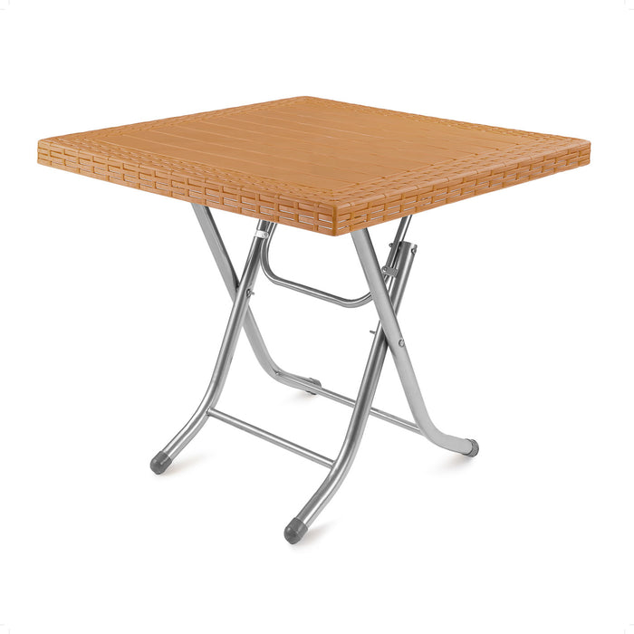شرح موجز للخواص العامة: طاولة مربعة رتان طوي تتميز بسطح راتان بلاستيكي وأرجل ألومنيوم قابلة للطي، مما يجعلها خيارًا مثاليًا لتلبية احتياجات المساحات الداخلية والخارجية. توفر سهولة النقل والتخزين، وتأتي بمجموعة من الألوان الجذابة لتناسب مختلف الأذواق.